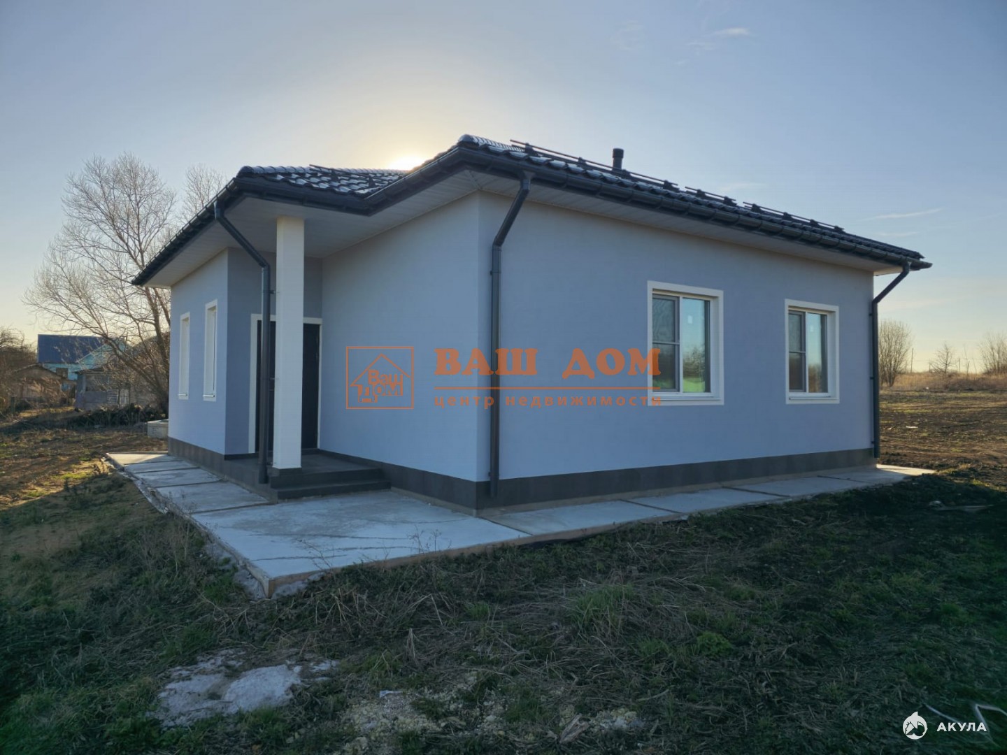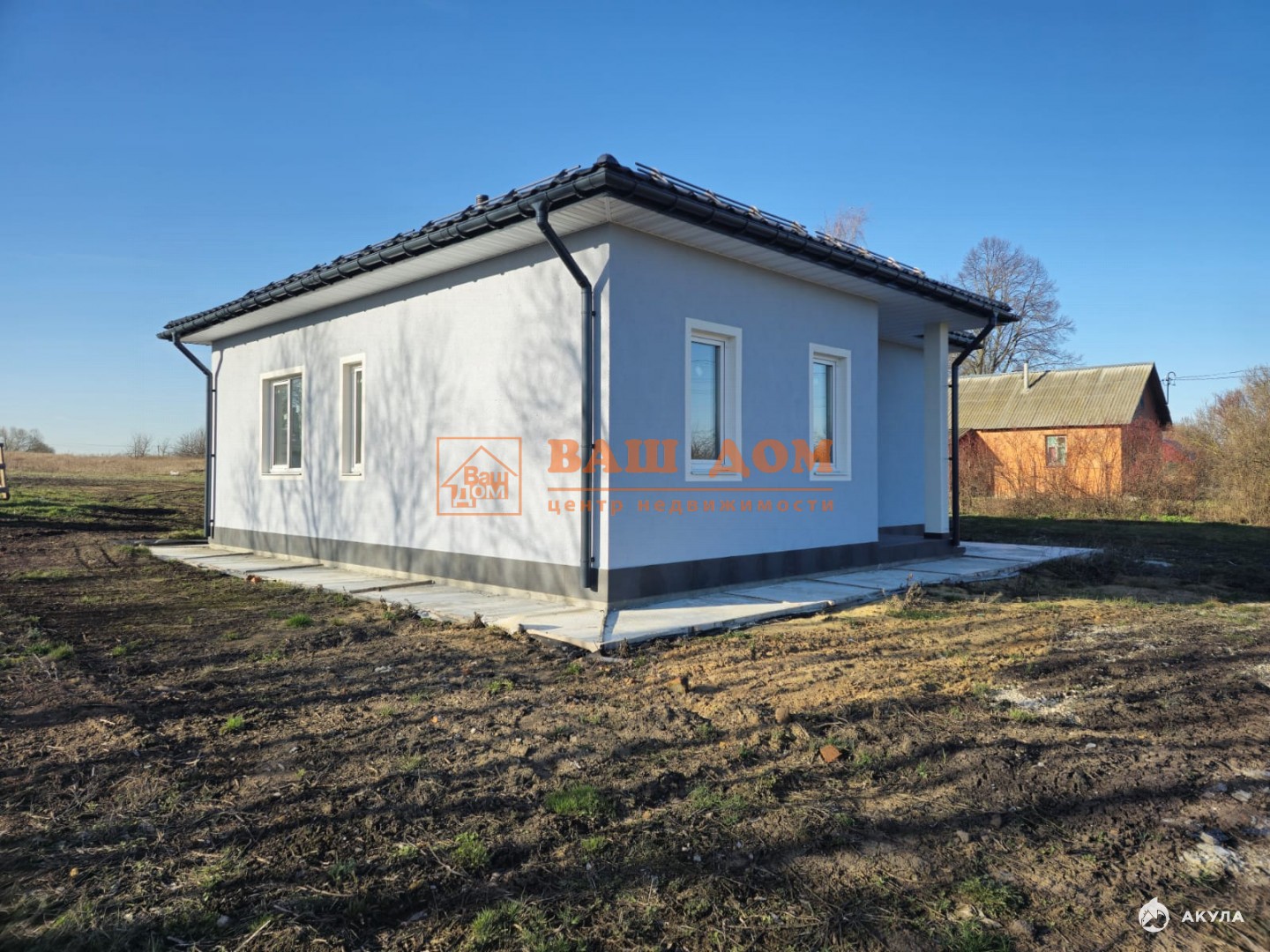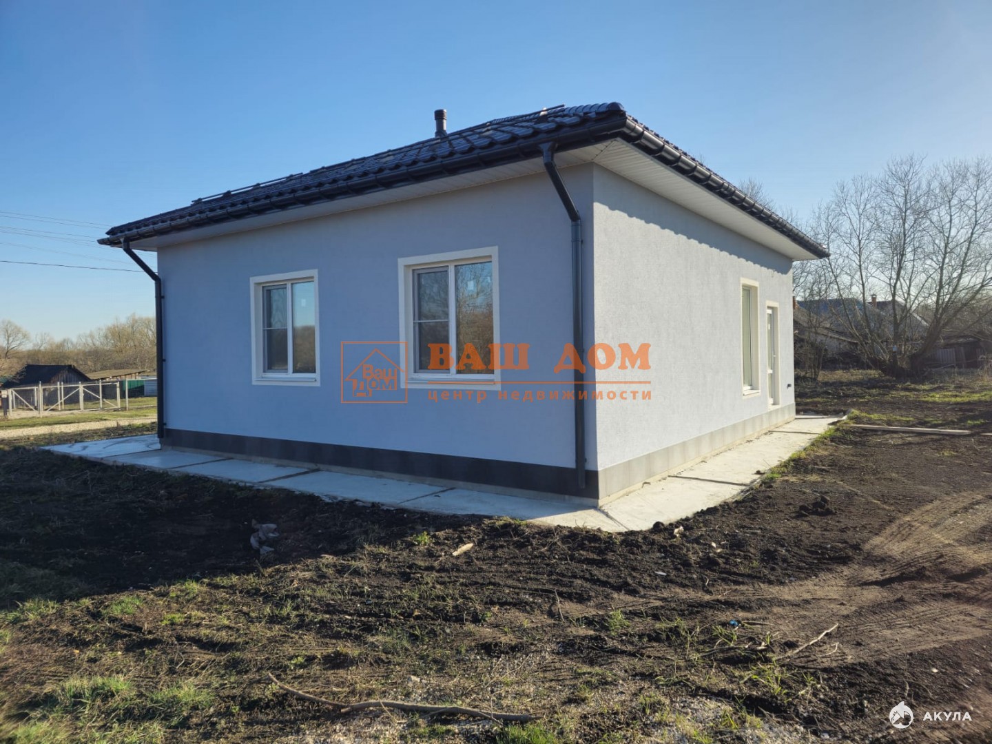 Дом общей площадью 70 кв м, материал блок 300 мм плюс 100 мм утеплитель, фасад декоративная штукатурка, фундамент плита бетонная 300 мм плюс утепление 100 мм, отмостка, цоколь отделан плиткой. В доме установлены стеклопакеты, заведены все коммуникации (электричество 15 кВ, вода, септик). Установлен электрический котёл, бойлер, система очистки воды. Газ по границе участка. Кровля - металлочерепица. Дом под чистовую отделку: залит и разведен тёплый пол, выровнены стены, разведена электрика, бойлерная отделана плиткой, теплая входная дверь с терморазрывом. В доме прихожая, бойлерная, гардеробная, две спальни и кухня-гостинная с выходом во двор. В строительстве использовались материалы не эконом класса. Участок ровный, отмежеван.